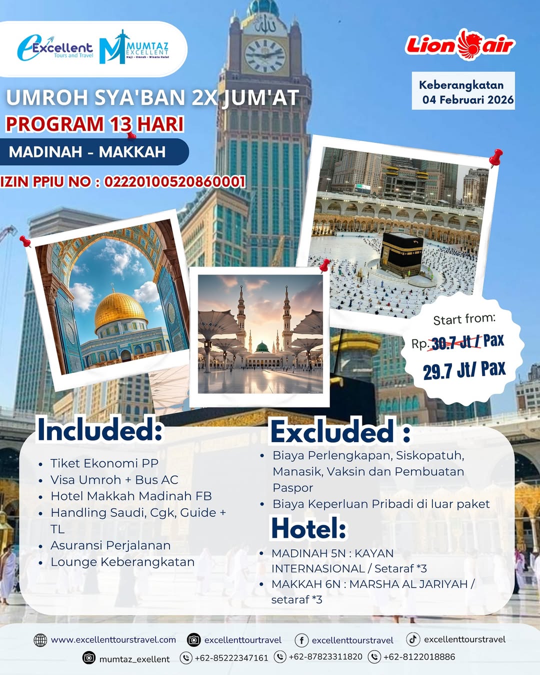 - ✨ UMROH SYA’BAN 2X JUM’AT — PROGRAM 13 HARI ✨Bersiap sambut berkah Syaban dan nikmati dua kali p
