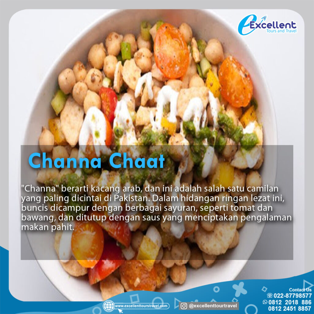 “Channa” berarti kacang Arab,dan ini adalah salah satu cemilan yang paling dicintai di Pakistan.Dalam hidangan ringan lezat ini,buncis dicampur dengan berbagai sayuran,seperti tomat dan bawang,dan di tutup dengan saus yang menciptakan pengalaman makan pahit.