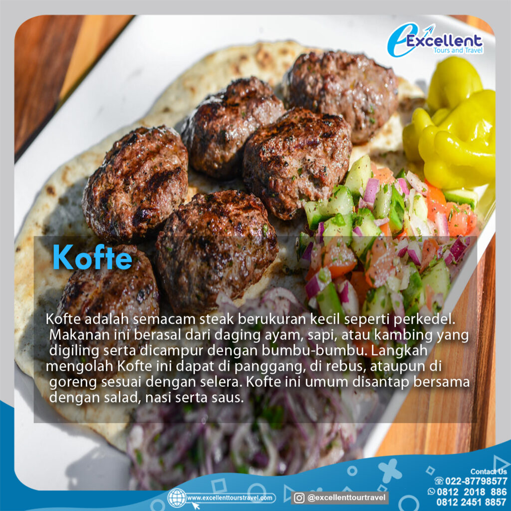 Kofte adalah semacam steak berukuran kecil seperti prekedal.Makanan ini berasal dari daging ayam,sapi,atau kambing yang di giling seta di campur dengan bumbu-bumbu.Langkah mengolah kofte ini dapat di panggang,di rebus,ataupun di goreng sesuai dengan selera.Kofte ini umum di santap bersama dengan salad,nasi serta saus.