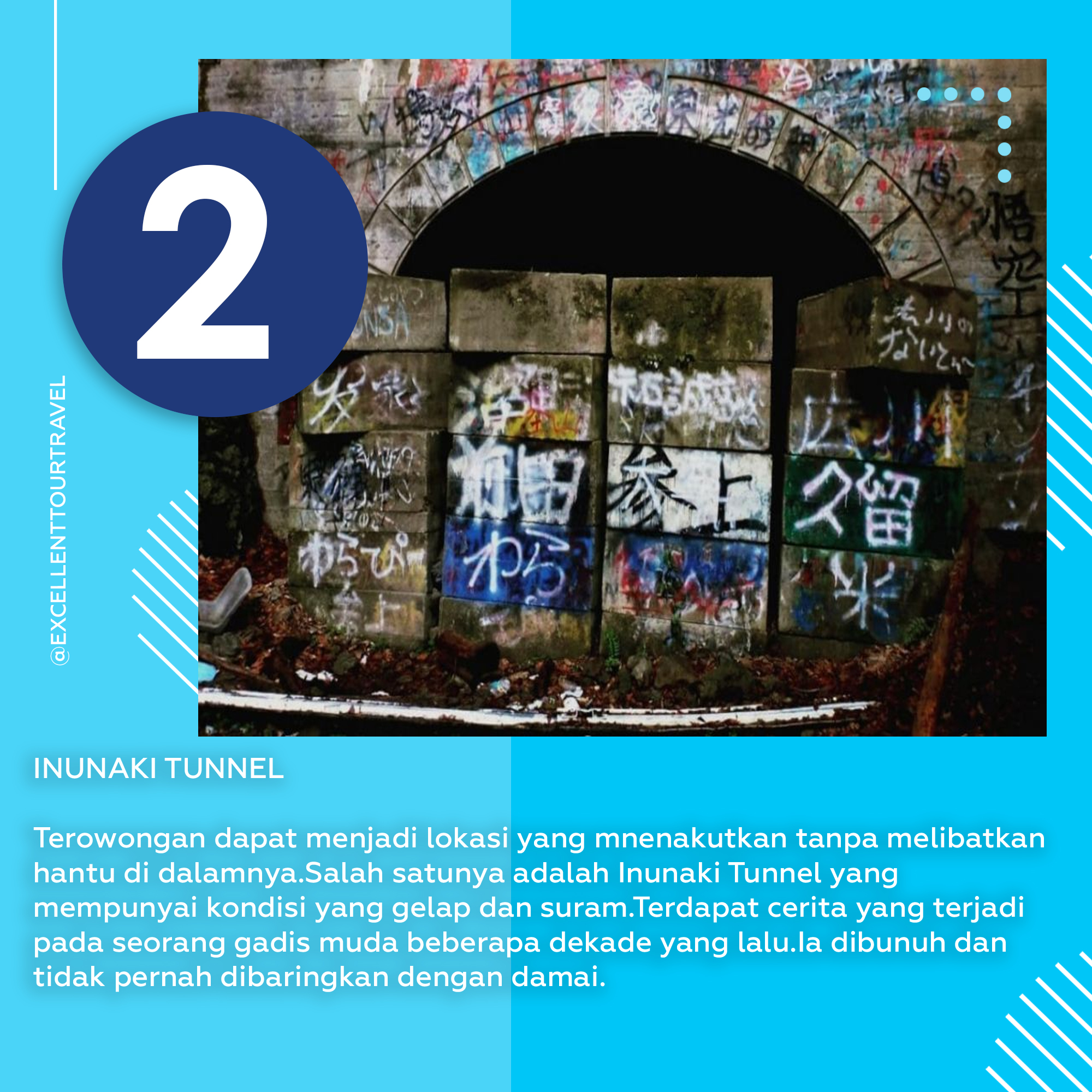 Terowongan dapat menjadi lokasi yang menakutkan bahkan tanpa melibatkan hantu di dalamnya. Salah satunya adalah Inunaki Tunnel yang mempunyai kondisi yang gelap dan suram.
