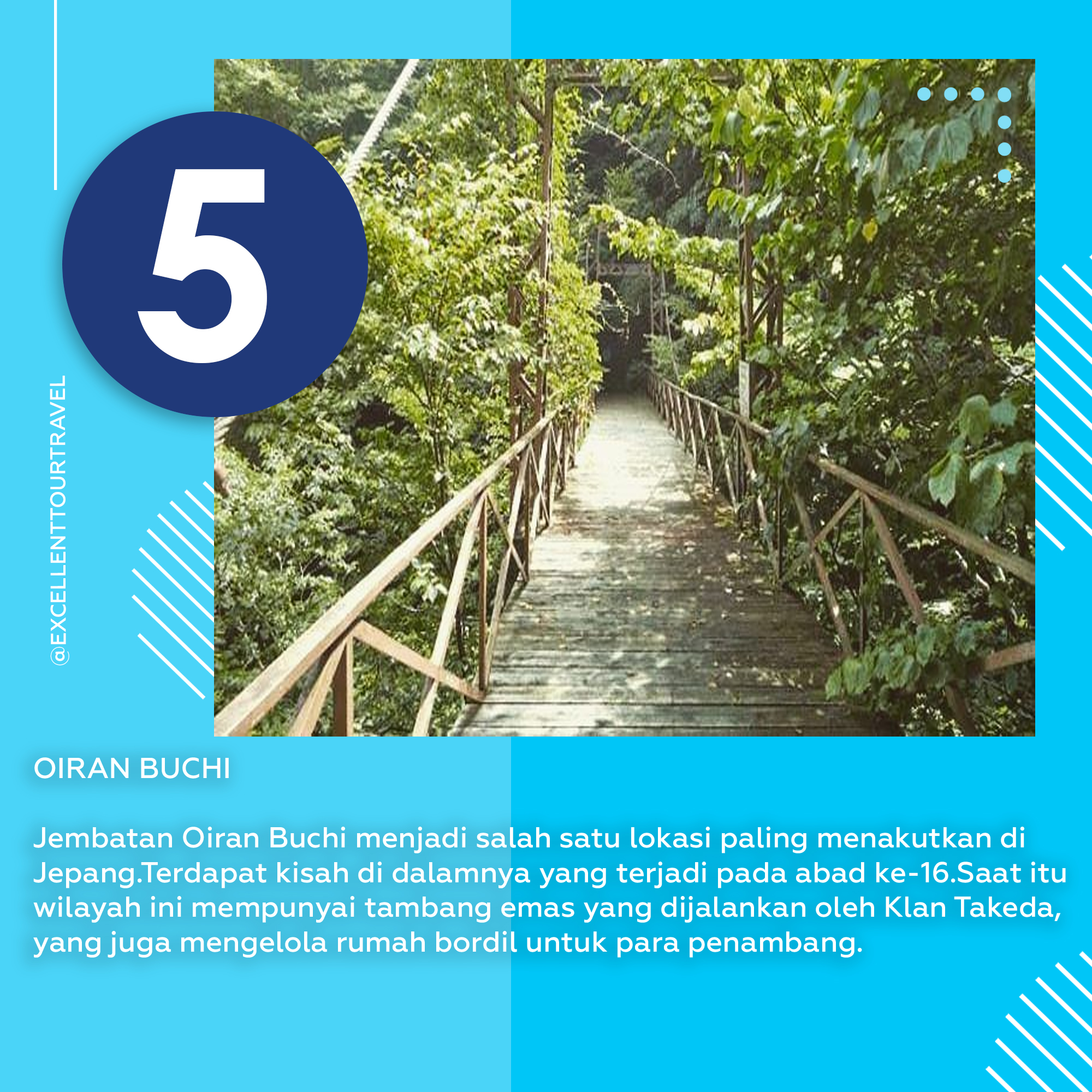 Jembatan Oiran Buchi menjadi salah satu lokasi paling menakutkan di Jepang. Terdapat kisah di dalamnya yang terjadi pada abad ke-16. Saat itu wilayah ini mempunyai tambang emas yang dijalankan oleh Klan Takeda, yang juga mengelola rumah bordil untuk para penambang.