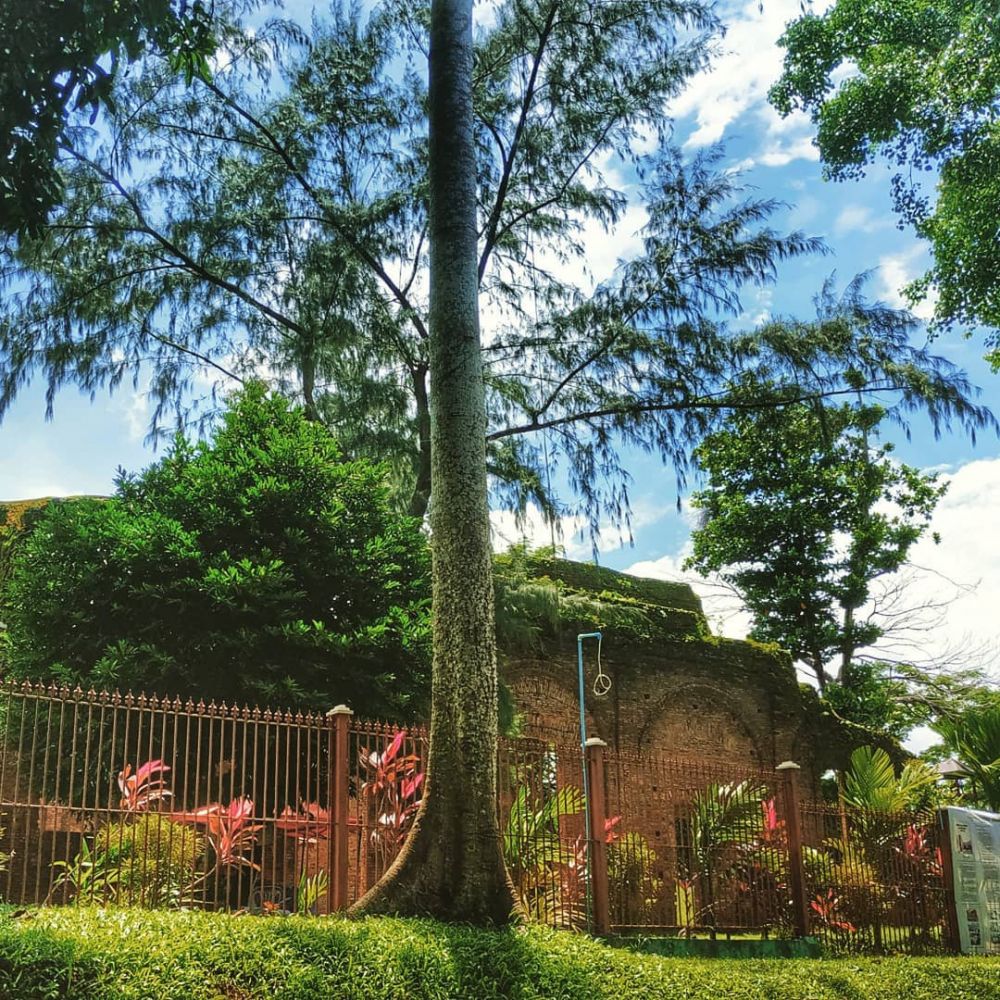Gereja Portugis yang dibangun pada tahun 1749 oleh seorang misionaris Italia itu kini hanya menyisakan reruntuhannya saja. Atap gereja sudah hilang, namun, dindingnya masih berdiri kokoh. Di gereja inilah terdapat makam De Brito, seorang tentara bayaran negara Portugis. Dia meninggal akibat mengalami luka tusukan. Adanya makam dan lingkungan sekitar gereja yang ditumbuhi oleh pohon-pohon besar membuat tempat ini terasa semakin menyeramkan. Siap-siap saja bulu kuduk merinding saat kamu mengunjungi tempat ini.