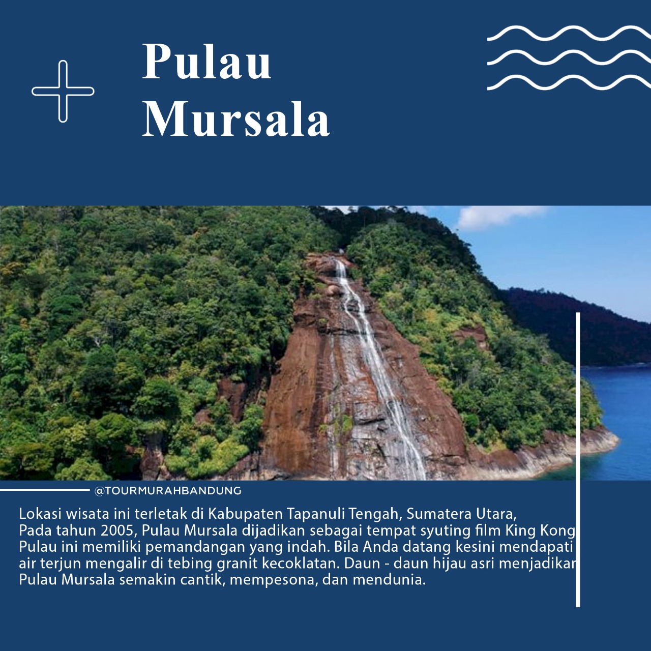Lokasi wisata ini terletak di Kabupaten Tapanuli Tengah, Sumatera Utara. Pada tahun 2005, Pulau Mursala dijadikan sebagai tempat syuting film King Kong. Pulau ini memiliki pemandangan yang indah. Bila Anda datang ke sini mendapati air terjun mengalir di tebing granit kecoklatan. Daun-daun hijau asri menjadikan Pulau Mursala ini semakin cantik, mempesona, dan mendunia.