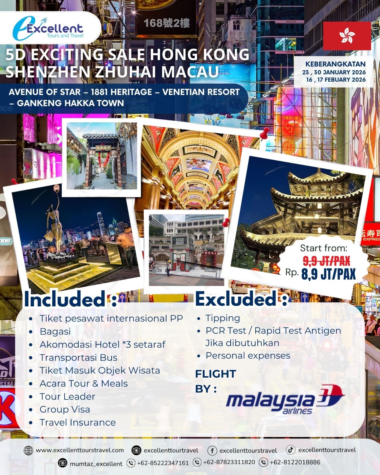 Mulai dari gemerlap Avenue of Stars, wisata heritage 1881, kemegahan Venetian Resort Macau, hingga nuansa budaya di Gankeng Hakka Town 🏙️✨