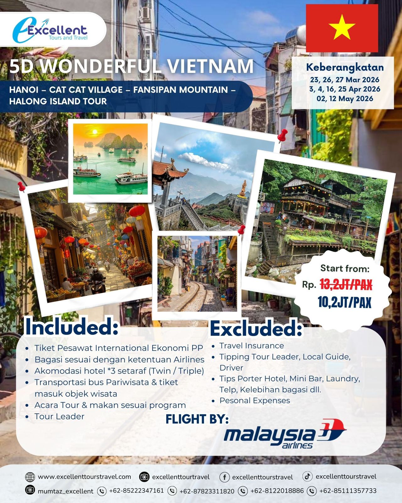 Jelajahi pesona budaya & alam dalam 5D WONDERFUL VIETNAM bareng Excellent Tours & Travel 💙