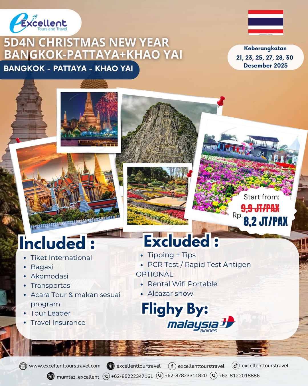 #ExcellentTourTravel#TourBangkokPattayaKhaoYai#WisataThailand#BangkokTrip PattayaTrip KhaoYai #LiburanAkhirTahun #ChristmasTrip #NewYearTrip #TravelPromo #OpenTripThailand #TravelWithExcellent #TripDesember #Holiday2025 #MalaysiaAirlines #TourLuarNegeri #TravelIndonesia #PaketTourThailand