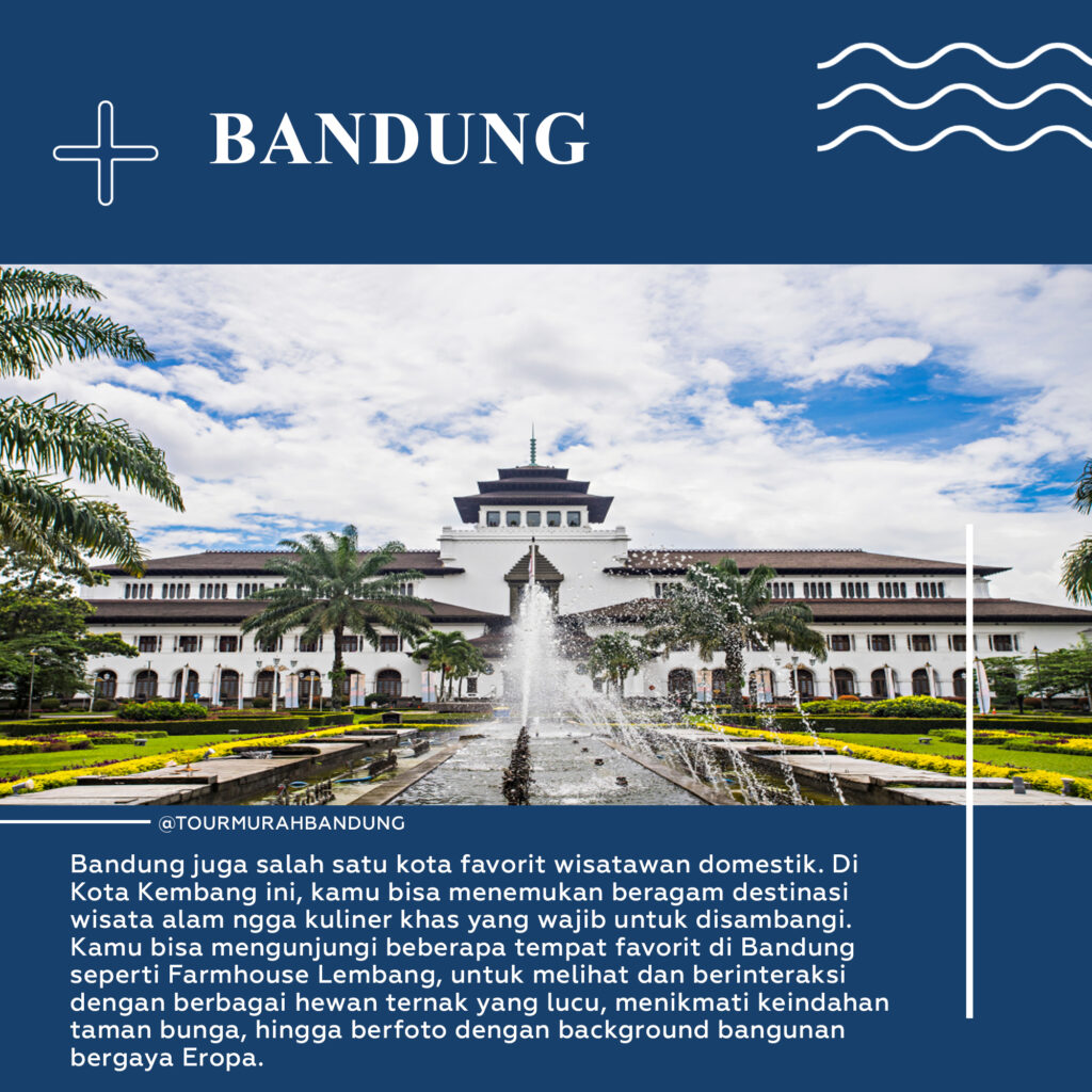Bandung juga salah satu kota favorit wisatawan domestik. Di Kota Kembang ini, kamu bisa menemukan beragam destinasi wisata alam hingga kuliner khas yang wajib untuk disambangi. Kamu bisa mengunjungi beberapa tempat favorit di Bandung seperti Farmhouse Lembang, untuk melihat dan berinteraksi dengan berbagai hewan ternak yang lucu, menikmati keindahan taman bunga, hingga berfoto dengan background bangunan bergaya Eropa.