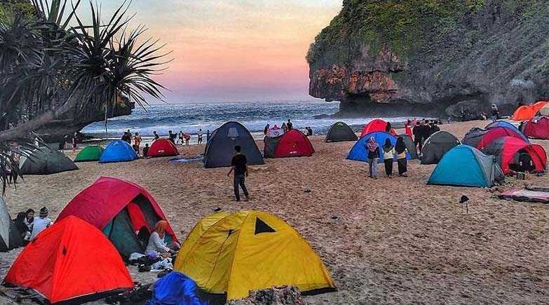 Apabila ingin merasakan sensasi menyatu dengan alam, kamu dapat melakukan camping di Pantai Greweng. Pemandangan bintang malam menyatu dengan suara deburan ombak akan menjadi pengalaman yang tidak terlupakan. Selain itu, hamparan pasir yang luas juga cukup menguntungkan. Kamu bisa camping bareng rombongan, lho!