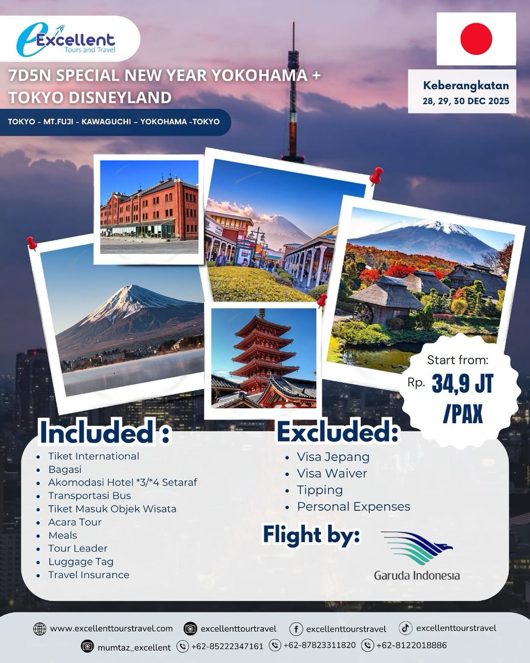 #ExcellentTours#NewYearInJapan#TokyoDisneyland#YokohamaTrip#LiburanAkhirTahun#TourJepang#TravelGoals#GarudaIndonesia#JapanTrip