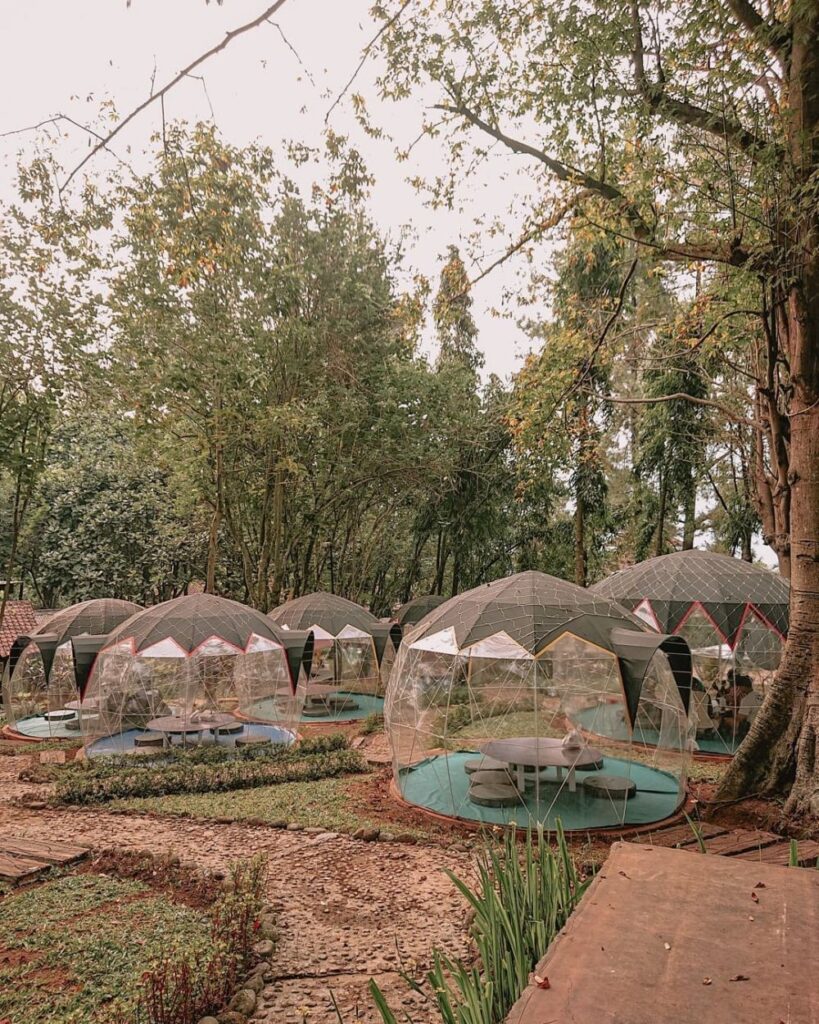 Kafe satu ini gak kalah viral dari Rustic Market Trawas. Terdapat banyak spot berupa tenda transparan yang dihiasi lampu di Jungle Camp Cafe.