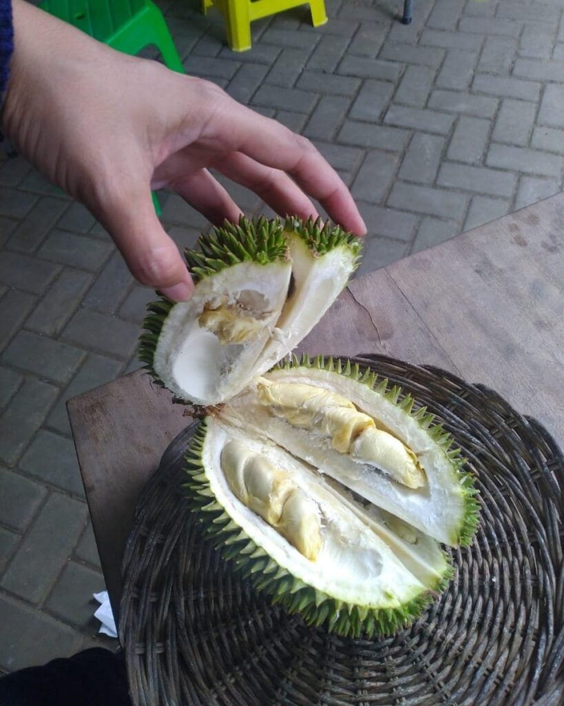 Bukan apel atau stroberi, melainkan durian, lho. Kamu bisa makan durian sampai puas sembari beraktivitas bersama alam di sini.