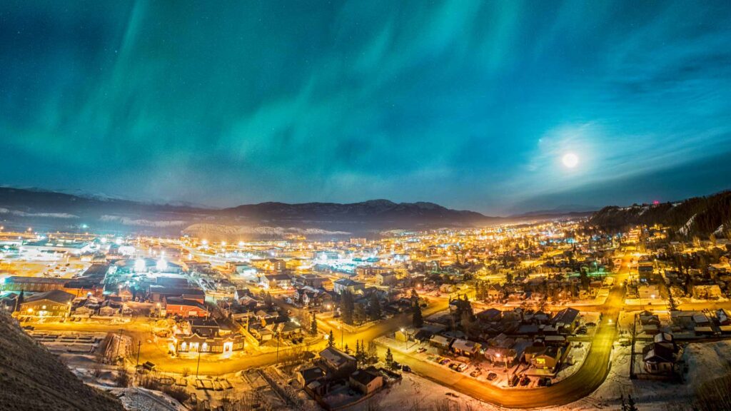 Whitehorse adalah salah satu kota di Yukon, Kanada, yang menyimpan pesona yang menakjubkan. Area ini menjadi tempat yang sempurna untuk melihat aurora dengan beragam warna. Saat aurora muncul pada saat musim salju, seketika kota seperti negeri dongeng yang menakjubkan.