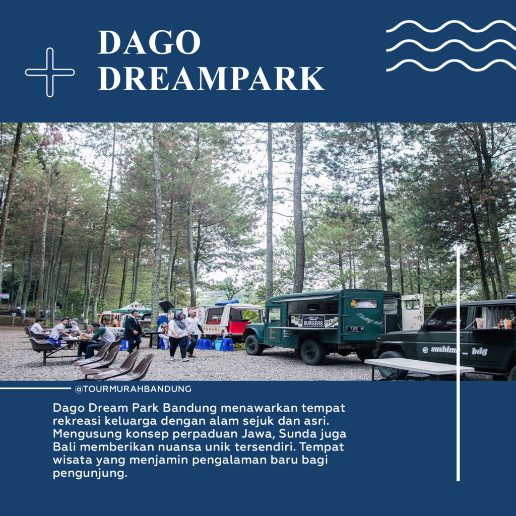 Dago Dream Park Bandung menawarkan tempat rekreasi keluarga dengan alam sejuk dan asri. Mengusung konsep perpaduan Jawa, Sunda juga Bali memberikan nuansa unik tersendiri. Tempat wisata yang menjamin pengalaman baru bagi pengunjung.