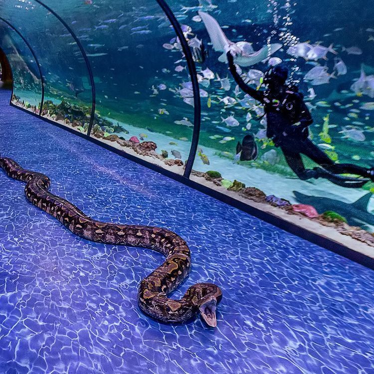 Daya tarik utama akuarium terbesar ini adalah ular piyon reticulated yang merupakan ular terbesar di dunia. Ular sanca batik betina berusia 14 tahun ini dikenal dengan nama Super Snake dengan bobot 115 kilogram. Reptil yang diklaim terpanjang di dunia ini memiliki panjang tujuh meter.