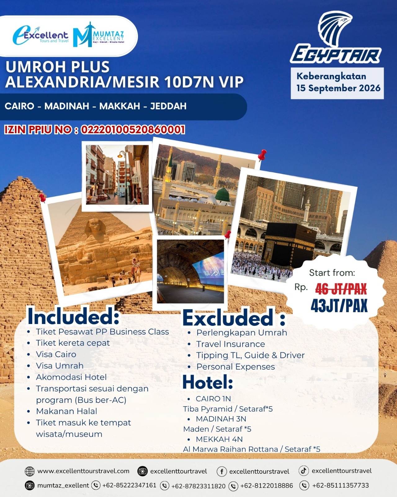 Menapaktilasi sejarah di Mesir 🇪🇬 lalu menunaikan ibadah di Tanah Suci dengan suasana yang lebih nyaman dan eksklusif.